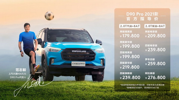 昨日晚间,2021款上汽大通MAXUS D90 Pro正式上市,共推出搭载2.0T汽油和2.0T柴油动力的共9款车型,官方指导价格区间为17.98-27.68万元。