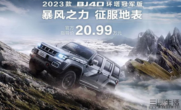 今日,北京越野官方公布旗下2023款BJ40环塔冠军版的指导售价,新车共推出一款配置,售价20.99万元。作为改款车型,其定为紧凑型SUV车型,相对旧款来说主要增加车辆底护板、轻量化轮圈、AT胎等配置,同时官方还在后备厢处增加220V电源来提升使用便利性。