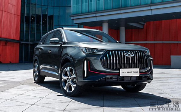 外观方面,新款瑞虎7 PLUS前脸部分采用大尺寸的多边形进气格栅设计,内部搭配十分大气的直瀑式镀铬饰条点缀。巨大的格栅搭配两侧造型锋利的LED大灯组,以及两侧纵向布置的LED日行灯,看上去攻击性十足。