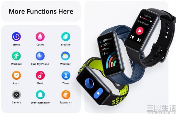 在功能性方面,据悉realme Band 2提供了丰富的健康与健身功能,以及心率监测、睡眠跟踪、自动计步器、饮水提醒和久坐提醒等。并新增了压力测量、女性健康追踪,以及SpO2传感器可测量血氧水平,支持多达90种运动模式。此外,还具备音乐控制、相机控制、天气预报、闹钟和50米防水等特性。