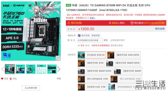 继华硕B760小吹雪D4主板后,近期华硕又推出一款全新浅色MATX主板——华硕B760天选(TX GAMING B760M WIFI D4)。该主板一经问世便受追捧,华硕京东预约量已超5000+。华硕B760天选主板采用月光银散热装甲加上天选配色,“颜”“战”双修,是超次元新潮玩神装,将成为二次元爱好者和游戏玩家的心动新选择。华硕B760天选主板将于22日正式开售,请锁定22日晚8点华硕天选新品发布会,天选姬将携手游戏主播周淑怡为你解锁次元新装备。