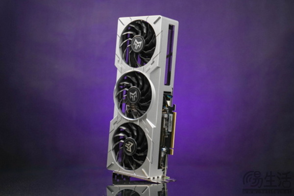 整卡由3个同样大小的92mm异形风扇组成,采用了二代经改良角度的11叶静霜扇叶,20mm厚度除了增大进风量进一步稳定显卡温度,加强核心动态频率的提升幅度,同时达到了进一步减少噪音的目的。同样支持智能启停。