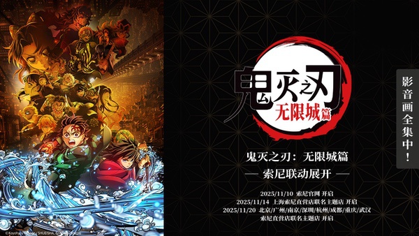 为让影迷深度徜徉于鬼灭之刃的热血宇宙,索尼倾力打造覆盖全国九大城市的线下狂欢据点,打造次元与现实的无缝衔接。11月14日,与电影首映同步,上海索尼直营店换上“无限城”主题盛装,变身“鬼灭之刃”主题店,率先开启线下联名活动;11月20日,北京、广州、成都、深圳、重庆、武汉、南京、杭州八城直营店集体完成“鬼灭之刃”主题改造。其中上海索尼直营店以动画经典人物和名场景为灵感打造超还原置景,更搭配索尼旗下高品质影音画设备,从视觉到听觉构建全方位沉浸式体验 —— 踏入门店的瞬间,影迷仿佛穿越次元壁,真切“走进”鬼灭之刃IP的热血宇宙。活动期间,亲临现场不仅能在主题场景中打卡互动,还能解锁多重福利:限量联名好礼静待领取,多款 “买赠” 周边福利同步上架,更多惊喜内容将持续揭晓,助力每一位来访者身临其境“无限城”。
